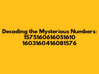 Unraveling the Enigma of 1575160616051610 1603160416081576