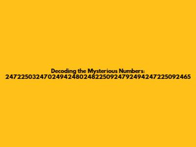 Hey guys, have you ever stumbled upon a string of numbers that seemed completely random? Well, today we're diving deep into one such sequence: 247225032470249424802482250924792494247225092465. What does it mean? Where did it come from? Is it some sort of secret code? Let's break it down and see if we can unravel the mystery behind these digits. This isn't just about the numbers; it's about the puzzle, the chase, and the satisfaction of understanding something previously unknown. So, buckle up, and let's get started on this numerical adventure! We'll explore various possibilities, from simple number sequences to potential codes, and examine any patterns that might emerge. Prepare to flex your brain muscles, as we try to decode this enigmatic string of numbers.