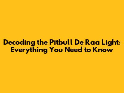 Hey guys! Ever heard of the Pitbull De Raa Light and wondered what it's all about? Well, you're in the right place! This article dives deep into everything you need to know about this fascinating topic. We're going to break it down in a way that's easy to understand, so you can walk away feeling like a pro. Let's get started!