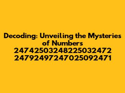 Hey there, number enthusiasts and curious minds! Ever stumbled upon a sequence of digits that just seems to stick in your head, whispering secrets you can't quite decipher? Well, that's the feeling we're diving into today! We're talking about the intriguing world of the numbers 24742503248225032472 24792497247025092471. Don't worry, you're not alone if you're thinking, "What in the world is that?" The goal here is to take those seemingly random numbers and break them down, understand their potential significance, and maybe even have a little fun along the way. Get ready to put on your detective hats, because we're about to explore a numerical enigma. Let's get cracking!