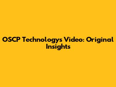 OSCP Technology's Video: Original Insights