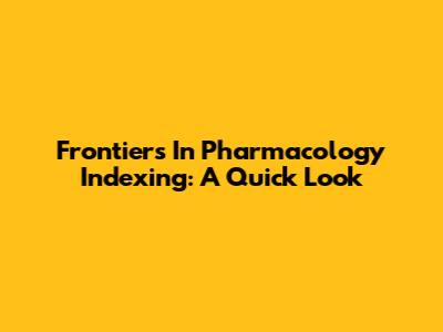 Frontiers In Pharmacology Indexing: A Quick Look