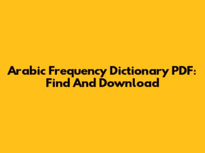 Arabic Frequency Dictionary PDF: Find And Download