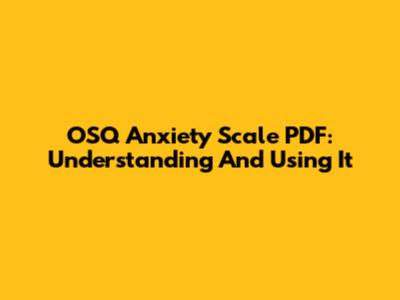 OSQ Anxiety Scale PDF: Understanding And Using It