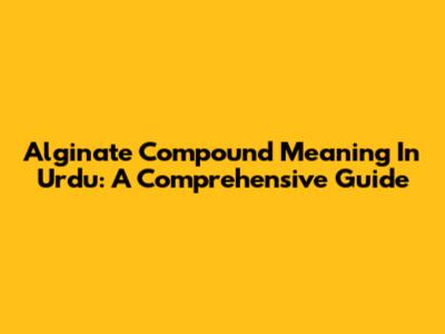 Alginate Compound Meaning In Urdu: A Comprehensive Guide