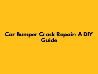 Car Bumper Crack Repair: A DIY Guide