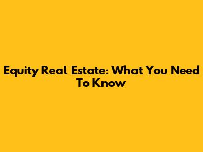 Equity Real Estate: What You Need To Know