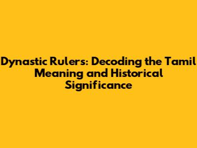 Tamil Translations and Linguistic Nuances of 'Dynastic Rulers'