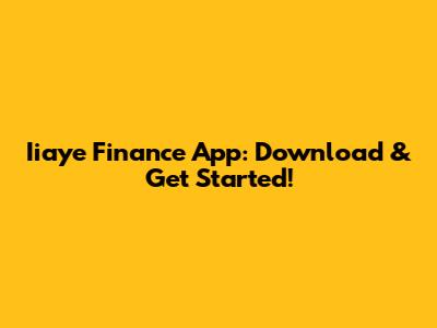 Iiaye Finance App: Download & Get Started!