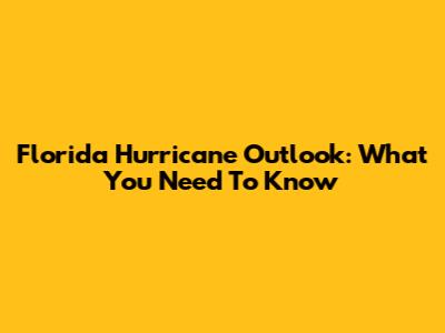 Florida Hurricane Outlook: What You Need To Know