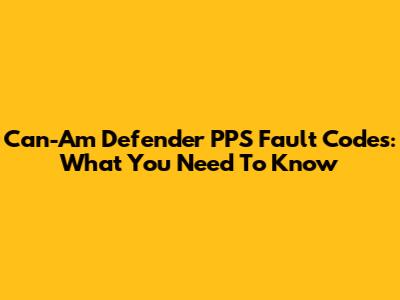 Can-Am Defender PPS Fault Codes: What You Need To Know