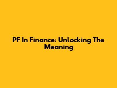 PF In Finance: Unlocking The Meaning