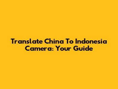 Translate China To Indonesia Camera: Your Guide