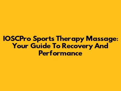 IOSCPro Sports Therapy Massage: Your Guide To Recovery And Performance