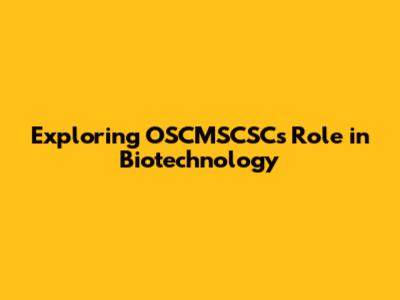 Why is OSCMSCSC Important in Biotechnology?