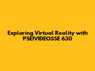 Diving into PSEIVIDEOSSE 630 and Virtual Reality