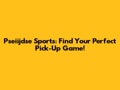 Pseiijdse Sports: Find Your Perfect Pick-Up Game!