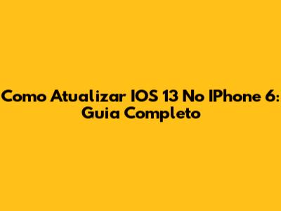 Como Atualizar IOS 13 No IPhone 6: Guia Completo