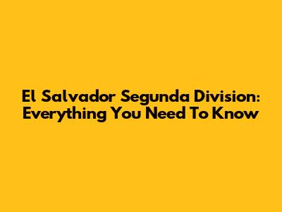 El Salvador Segunda Division: Everything You Need To Know