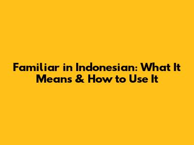 Understanding 'Familiar' in Indonesian Culture and Language