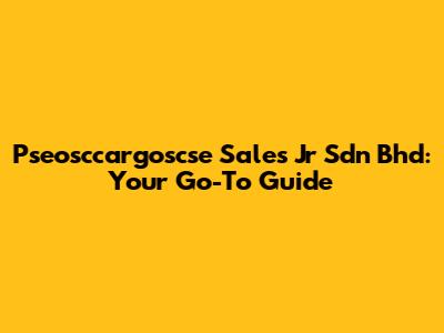 Pseosccargoscse Sales Jr Sdn Bhd: Your Go-To Guide