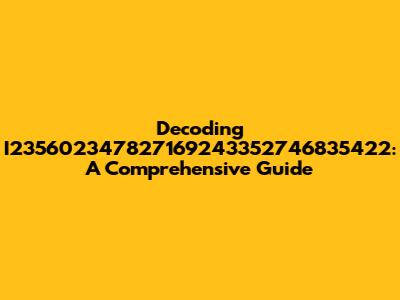 Decoding I235602347827169243352746835422: A Comprehensive Guide