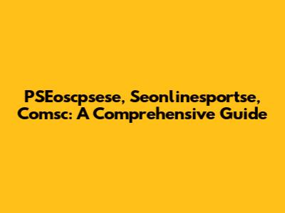 PSEoscpsese, Seonlinesportse, Comsc: A Comprehensive Guide