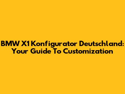 BMW X1 Konfigurator Deutschland: Your Guide To Customization