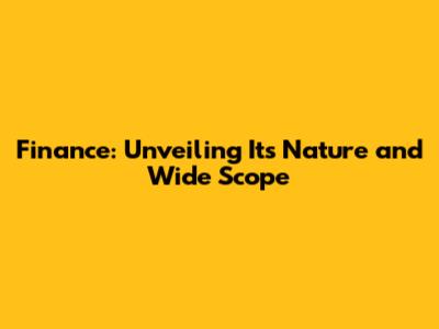 Exploring the Diverse Scope of Finance