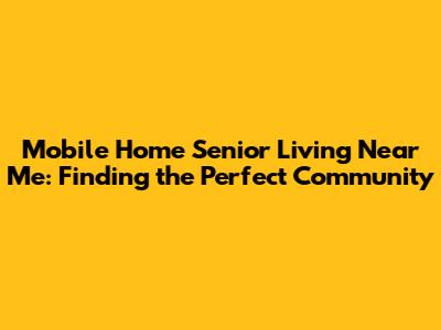 Mobile Home Senior Living Near Me: Finding the Right Fit