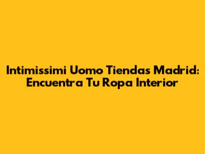 Intimissimi Uomo Tiendas Madrid: Encuentra Tu Ropa Interior