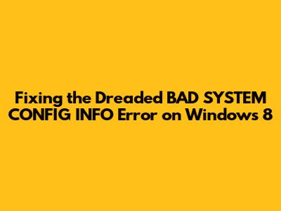 Alright guys, let's talk about a really annoying Windows error that can pop up and ruin your day: the BAD_SYSTEM_CONFIG_INFO error on Windows 8. It's one of those blue screen of death (BSOD) situations that makes you instantly go, "What the heck just happened?!" But don't freak out! While it sounds super technical and scary, it's usually something we can tackle with a few steps. This error message basically means that a crucial system configuration setting is messed up, preventing your Windows 8 from booting up correctly. It could be due to a recent hardware change, a problematic software update, or even some corrupted system files. We're going to dive deep into what causes this, and more importantly, how to get your system back up and running smoothly. So, grab your favorite beverage, and let's get this sorted!