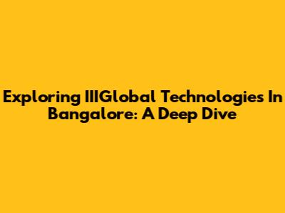 Exploring IIIGlobal Technologies In Bangalore: A Deep Dive