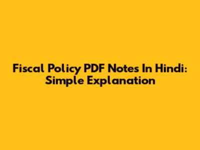 Fiscal Policy PDF Notes In Hindi: Simple Explanation