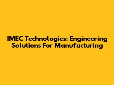 IMEC Technologies: Engineering Solutions For Manufacturing