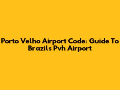 Porto Velho Airport Code: Guide To Brazil's Pvh Airport