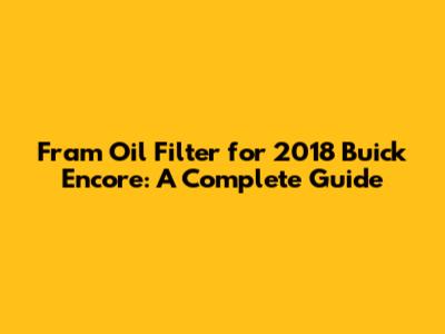 Hey there, car enthusiasts! If you're rolling with a 2018 Buick Encore, chances are you're all about keeping that ride in tip-top shape. And a crucial part of that is regular oil changes, right? Now, when it comes to oil changes, the oil filter is your unsung hero. It's the gatekeeper, the guardian, the thing that keeps all those nasty particles and contaminants from wreaking havoc on your engine. Today, we're diving deep into the world of oil filters, specifically the Fram oil filter designed for your 2018 Buick Encore. We'll cover everything from why you need a good oil filter to how to choose the right one, and even a little bit about installation. So, buckle up, because we're about to get greasy!