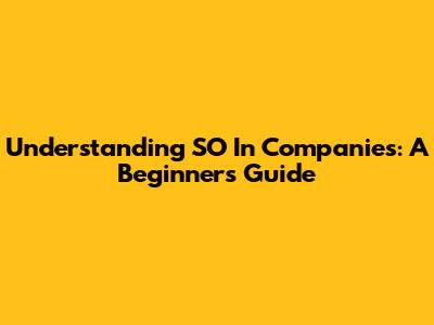 Understanding SO In Companies: A Beginner's Guide