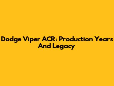 Dodge Viper ACR: Production Years And Legacy