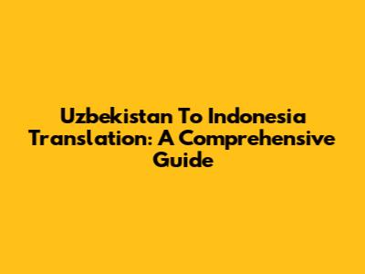 Uzbekistan To Indonesia Translation: A Comprehensive Guide