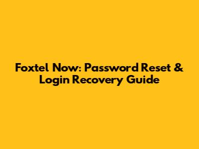 Foxtel Now: Password Reset & Login Recovery Guide