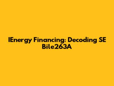 IEnergy Financing: Decoding SE Bile263A