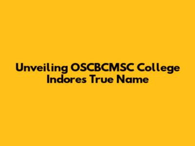Unveiling OSCBCMSC College Indore's True Name