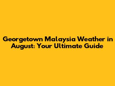 Hey guys! Planning a trip to Georgetown, Malaysia in August? Awesome choice! You're in for a treat with its rich history, vibrant culture, and delicious food scene. But before you pack your bags, it's super important to know what the weather will be like. This guide will give you the lowdown on everything you need to know about the Georgetown Malaysia weather in August, helping you prepare for an unforgettable adventure. We'll dive deep into the temperature, humidity, rainfall, and even offer some tips on what to wear and what to do. So, let's get started, shall we?