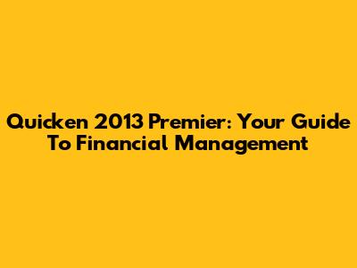 Quicken 2013 Premier: Your Guide To Financial Management