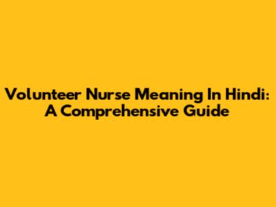 Volunteer Nurse Meaning In Hindi: A Comprehensive Guide