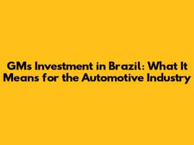 Let's dive into the exciting news about General Motors' (GM) significant investment in Brazil! This move is a big deal, not just for GM, but for the entire automotive industry and the Brazilian economy. We're going to break down what this investment entails, why it's happening, and what impact it's likely to have. So, buckle up, and let's get started!