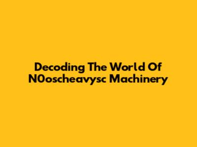 Decoding The World Of N0oscheavysc Machinery