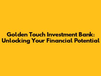 Hey guys! Today, we're diving deep into the world of finance and talking about a company that's making some serious waves: Golden Touch Investment Bank Ltd. If you're looking to grow your wealth, secure your financial future, or explore exciting investment opportunities, then you've come to the right place. We're going to unpack what makes Golden Touch Investment Bank tick, what services they offer, and why they might just be the financial partner you've been searching for. So, buckle up, because we're about to uncover the golden opportunities waiting for you!