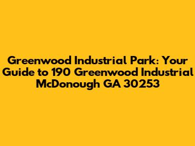 Hey guys! Ever wondered about the buzzing energy of the industrial landscape, particularly around the McDonough, Georgia area? Well, buckle up, because we're diving deep into the heart of Greenwood Industrial Park, specifically focusing on the address 190 Greenwood Industrial McDonough GA 30253. This place is a hub of activity, a cornerstone of business, and a key player in the local economy. Let's break down everything you need to know about this significant location. We'll explore its importance, the types of businesses you can find there, and what makes it such a vital part of the community. Get ready to learn about the ins and outs of 190 Greenwood Industrial Drive, and discover why it's more than just an address – it's a testament to growth and opportunity.
